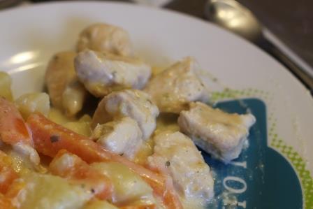 Poulet boursin, pommes de terre et carottes